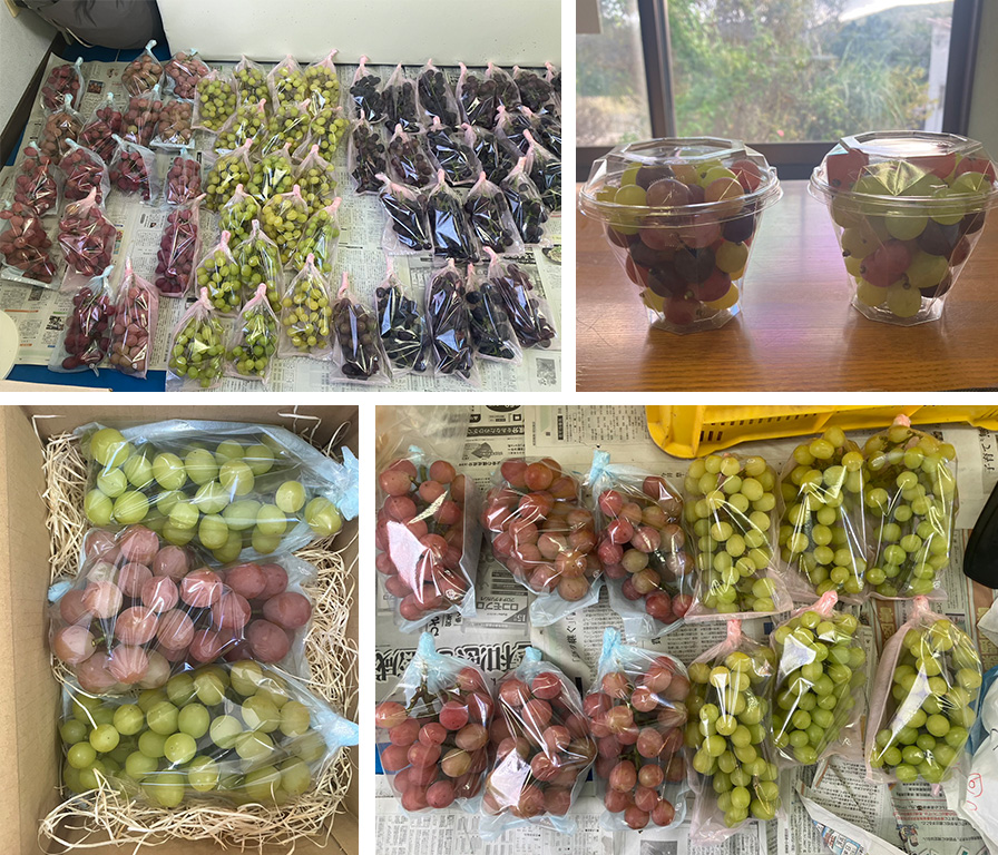 今年はまとまった雨に恵まれず、収穫が心配されましたが、従業員の努力とぶどうの生命力に助けられ、無事に約1,000房を収穫することができました。